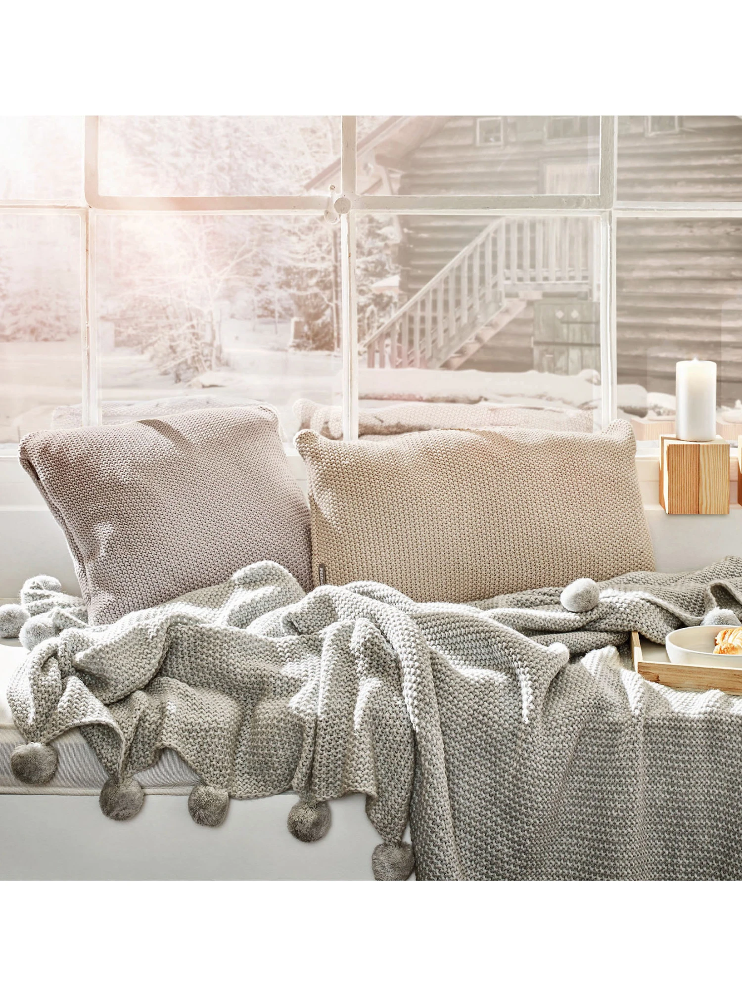 Einfach hyggelig. Verführerisch weiche Strickdecke. Material: 100 % Polyacryl. Oeko-Tex Standard 100.