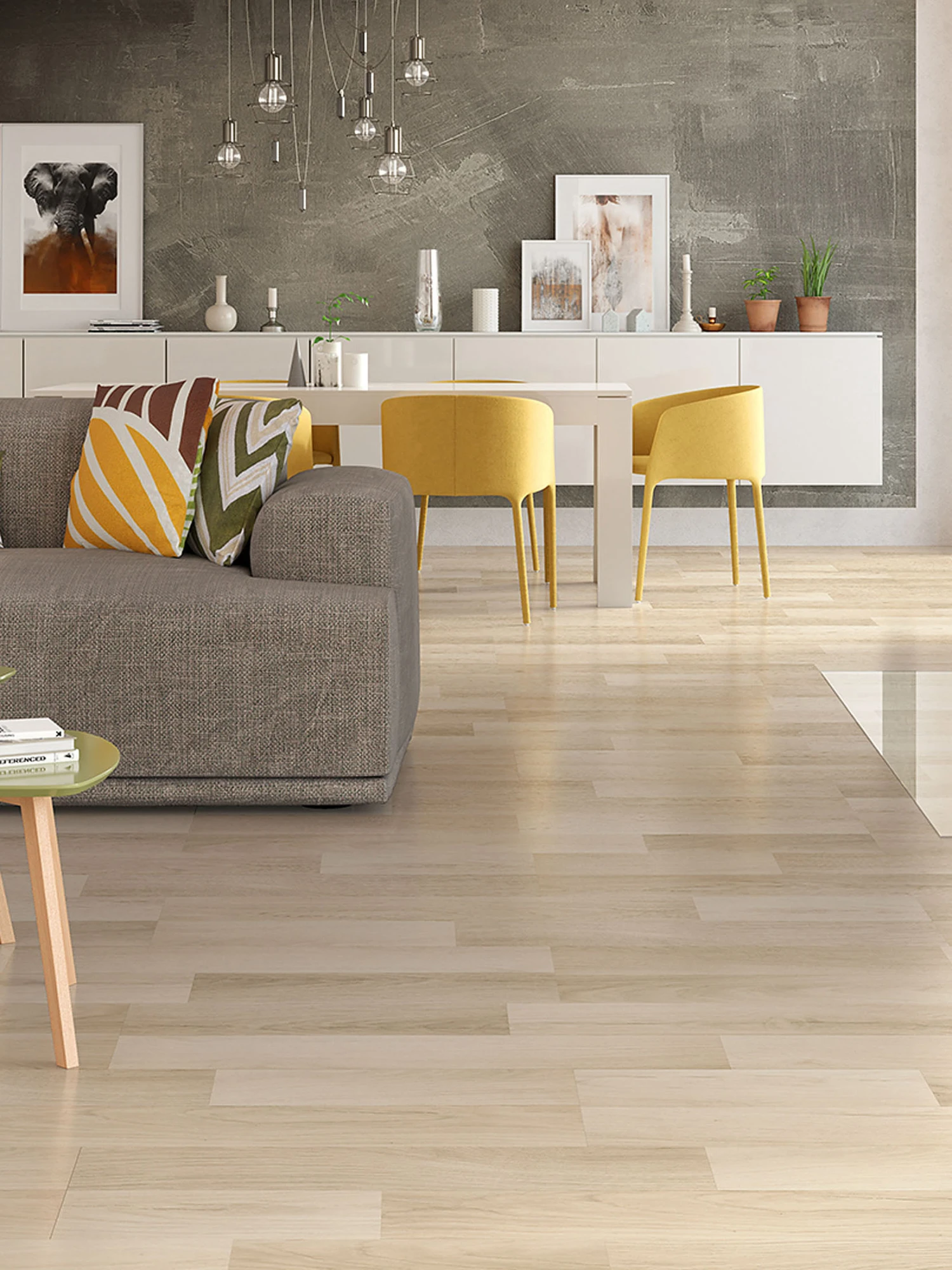 Premium-Klicklaminat. Ein sehr dekorativer und besonders natĂŒrlich wirkender Laminatboden. Die Besonderheit, die diesen Boden von anderen Laminatböden abheben lĂ€sst, ist seine geprĂ€gte OberflĂ€che, die das Laminat noch naturgetreuer aussehen und wirken lĂ€sst, fast wie echter Holzboden. AuĂerdem ist der Boden besonders krĂ€ftig mit ca. 8 mm StĂ€rke und fĂŒr den Einsatz in RĂ€umen mit starker Nutzung hervorragend geeignet. Er hat die Nutzungsklasse 32. Die patentierte Klickverbindung erlaubt zudem eine schnelle und einfache Verlegung â ganz ohne Leim. In vielen trendigen Dekoren fĂŒr Sie vorrĂ€tig.