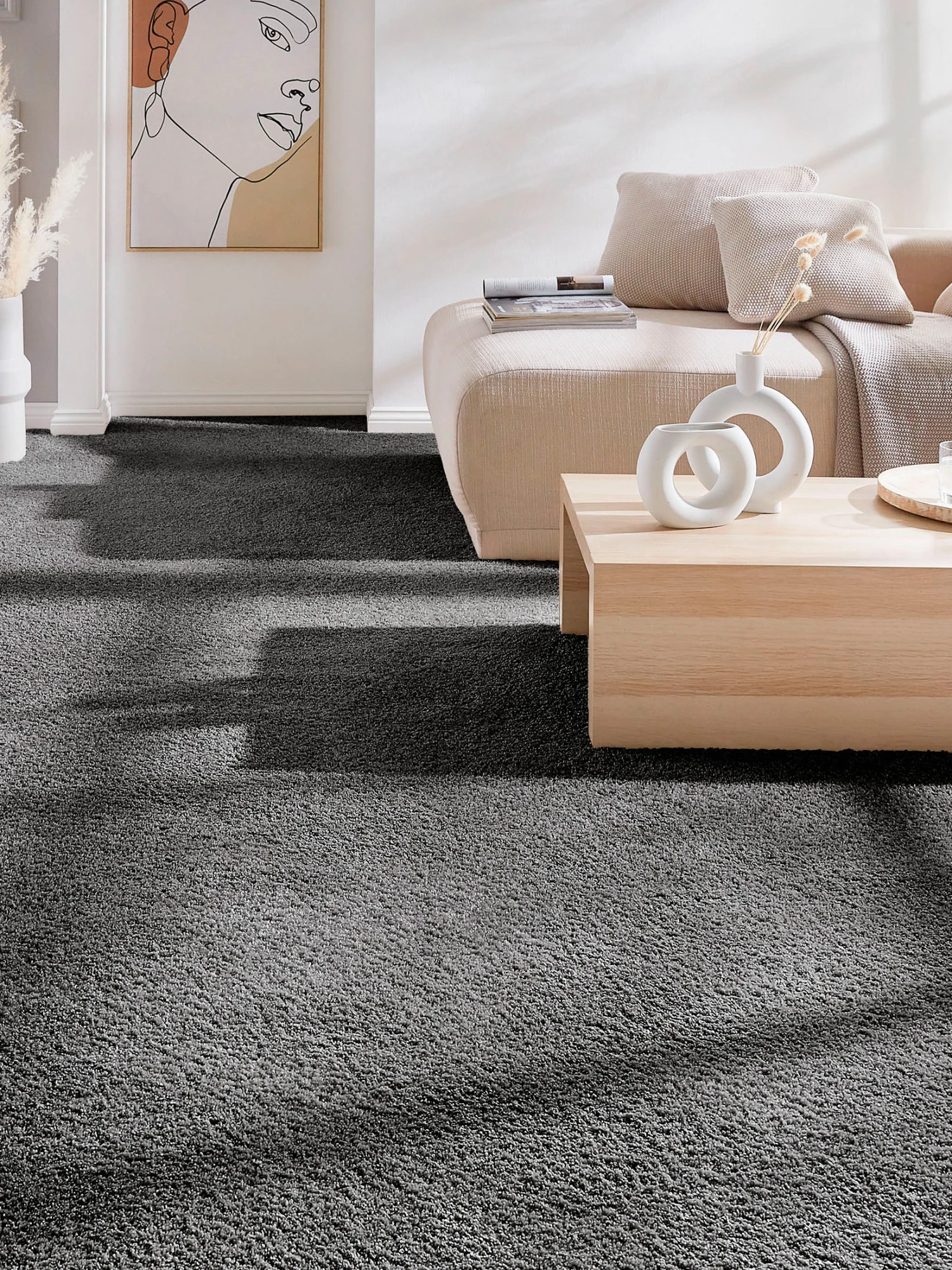 Ein höchst attraktiver Kräuselvelours-Teppichboden mit einem schönen, dichten und weichen Flor in trendigen Farben. Dieses KIBEK-Spitzenprodukt ist zudem bemerkenswert strapazierfähig und sehr pflegeleicht. Das hohe Gesamtgewicht von ca. 2300 g pro m² und die Florhöhe von ca. 16 mm bieten besonders hohen Komfort und vermitteln luxuriöses Wohngefühl. KIBEK-DoubleTex-Vliesrücken. Fußbodenheizungsgeeignet, antistatisch und schadstoffgeprüft.