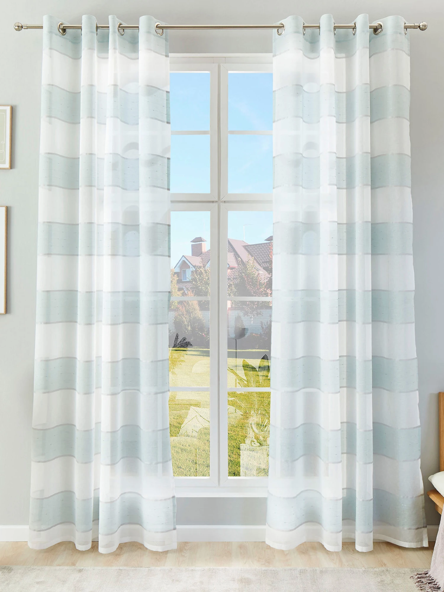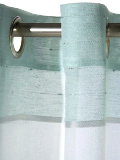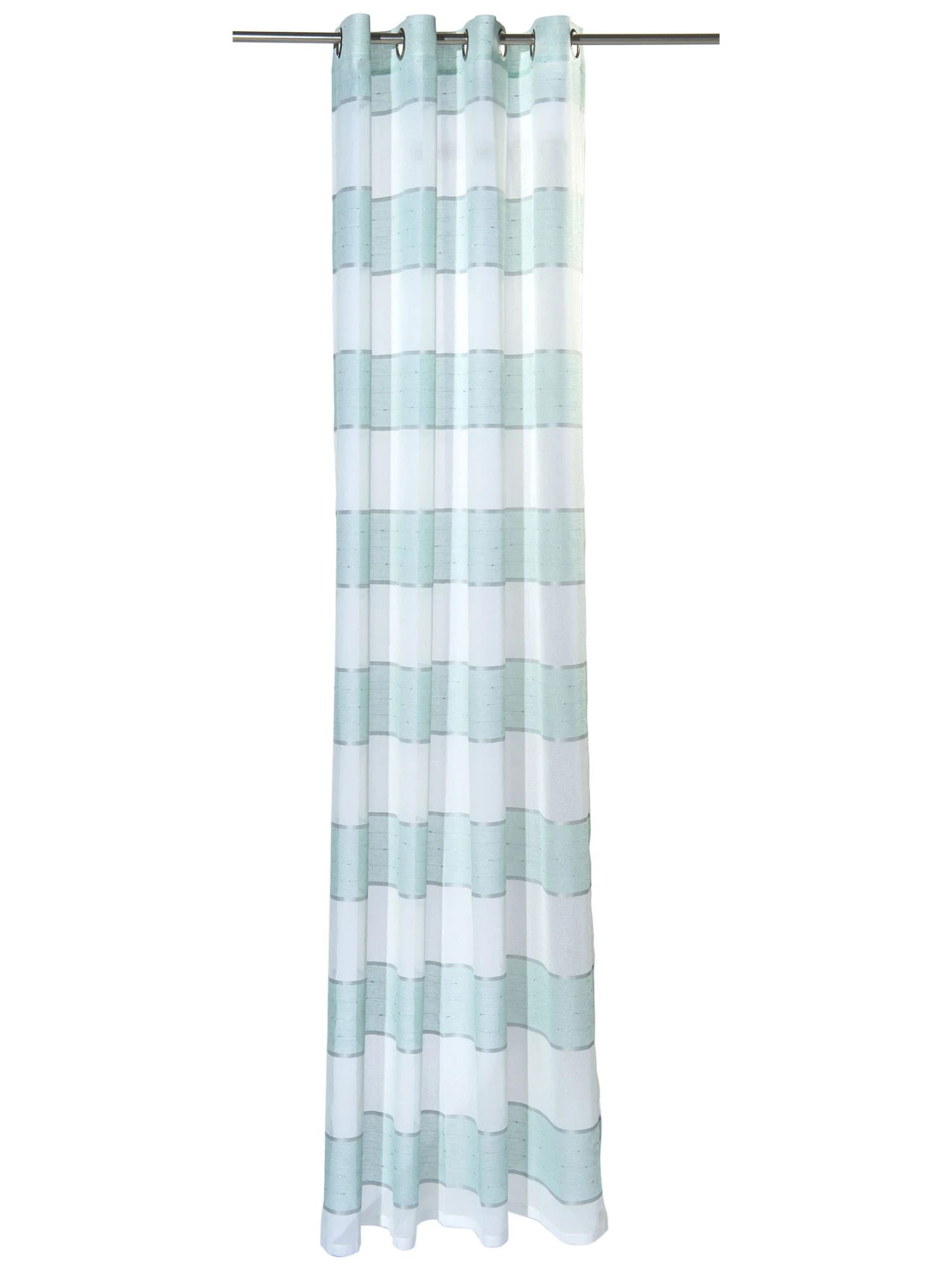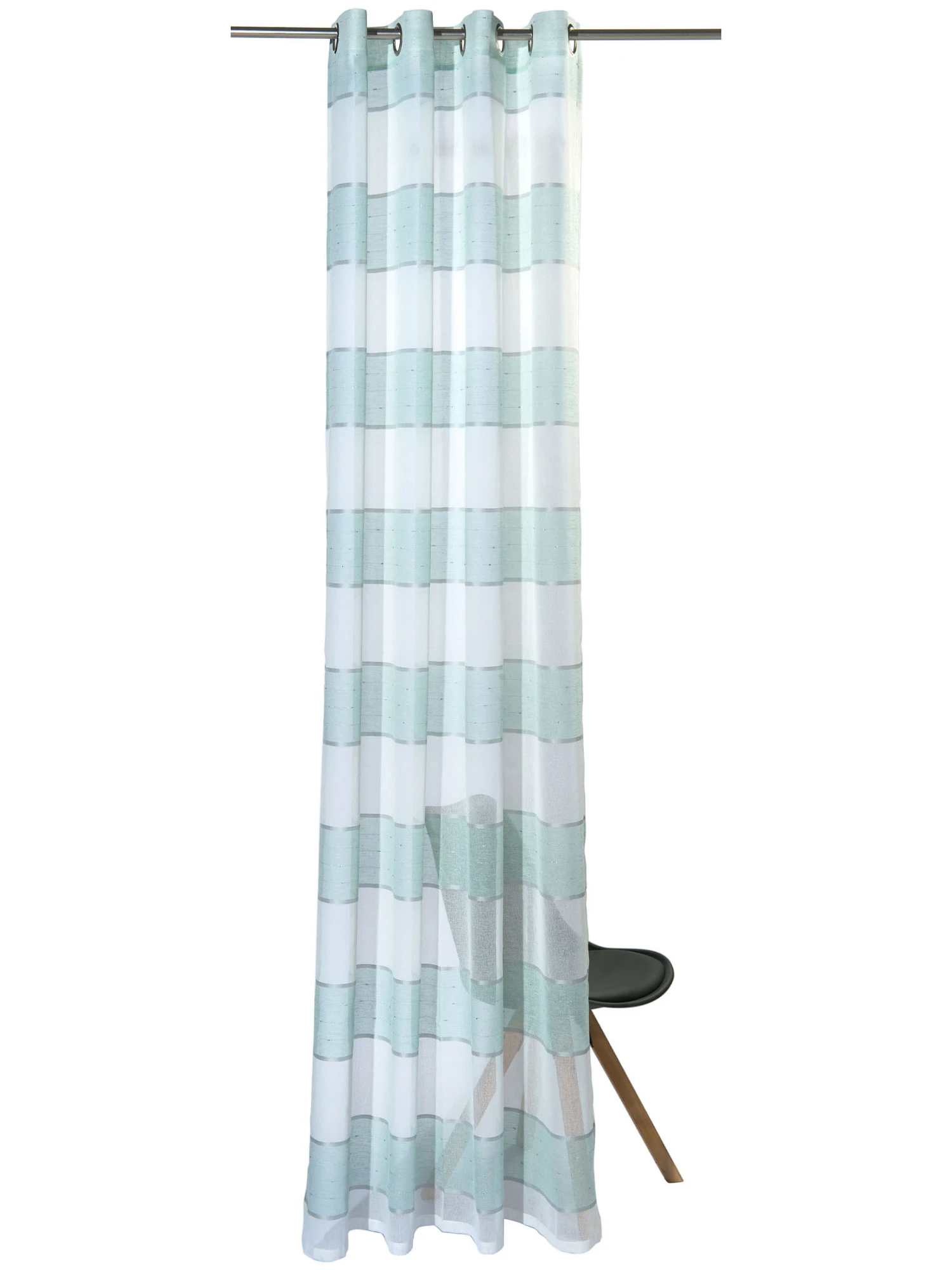 Modisch quergestreifter Ösenschal aus 100 % Polyester. Der Vorhang ist leicht transparent und kann bei 30° C gewaschen werden. Öko-Tex Standard 100.