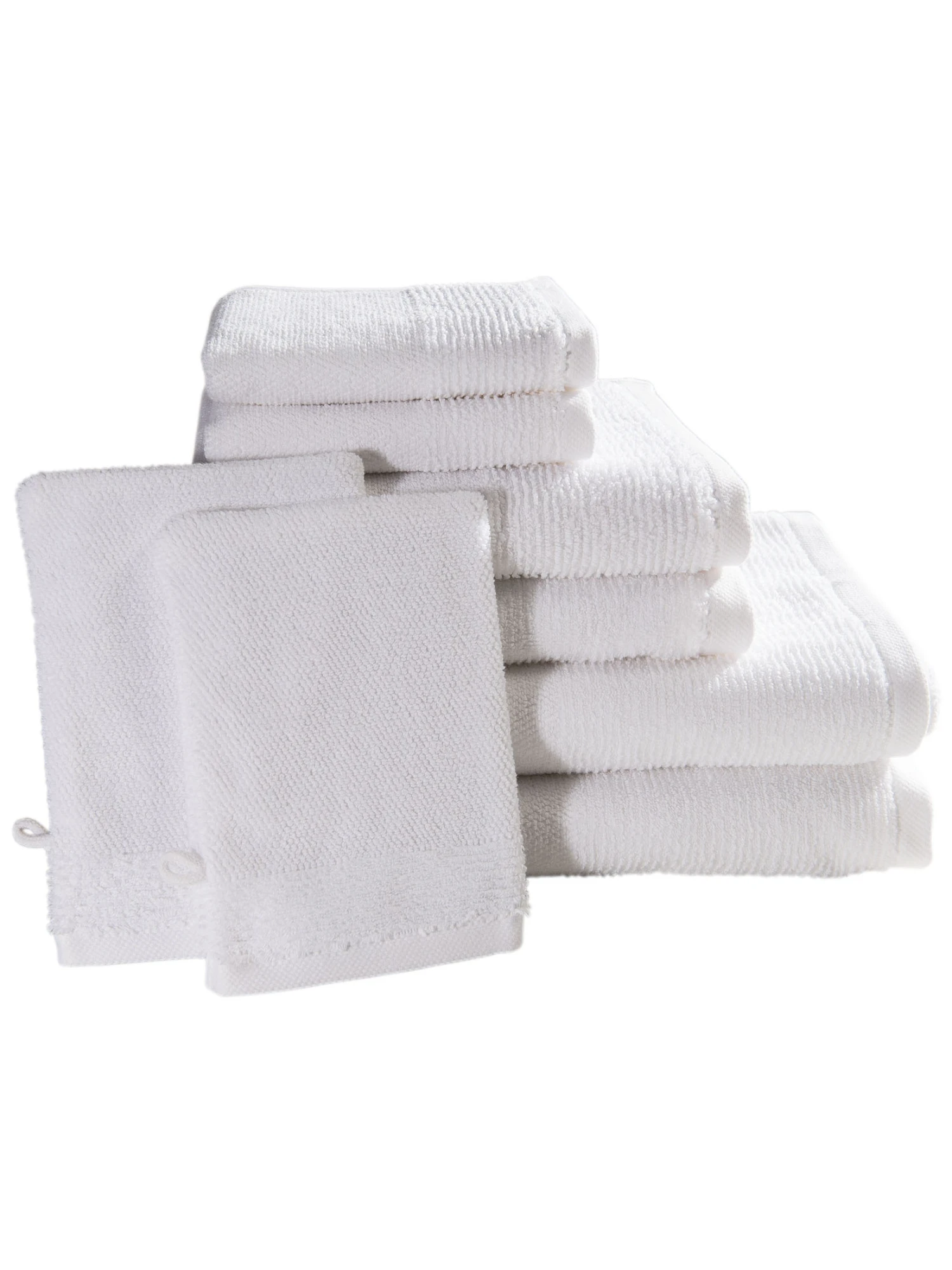 Das 8-teilige Vorteilspaket besteht aus zwei Waschhandschuhen je ca. 16 x 22 cm, zwei Gästetüchern je ca. 30 x 50 cm, zwei Handtüchern je ca. 50 x 100 cm und zwei Duschtüchern je ca. 70 x 140 cm.